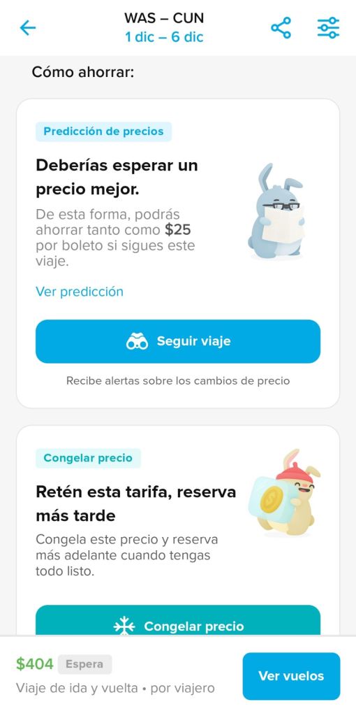 It shows you a color-coded calendar (green = cheapest) and literally tells you whether to buy now or wait. If the prices are good but your wallet says, “I can’t right now,” you can lock in a price with a small fee and come back later to purchase. It’s like layaway for flights.